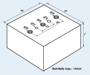 mit 3xGew.M6/ 2 Stiftbohr.Ø3+4